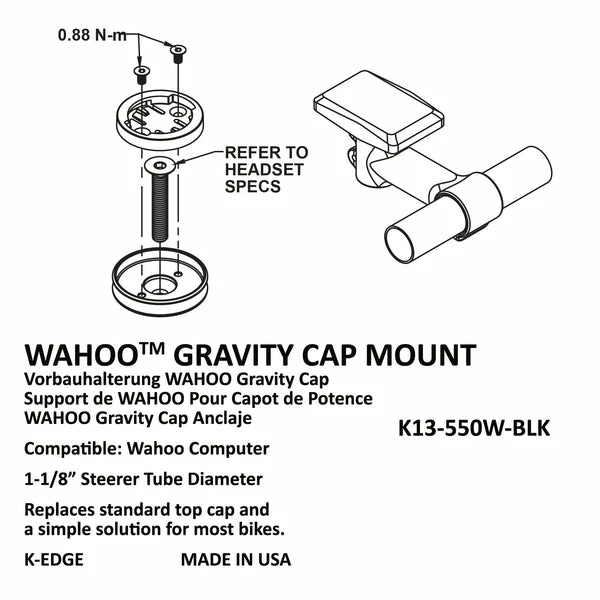 The K-EDGE Gravity Top Cap is a great computer mount for those mountain riders who want a secure, simple and sleek computer mount solution. The Gravity Cap replaces your existing top cap with the our mount milled out of US made 6061 aluminum. Ideal position for Downhill and Enduro racing, also a popular solution for any bike when using a smaller style computer.
