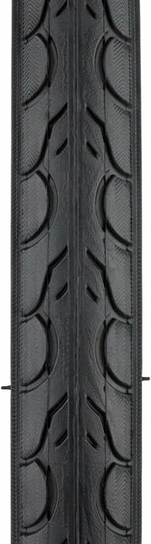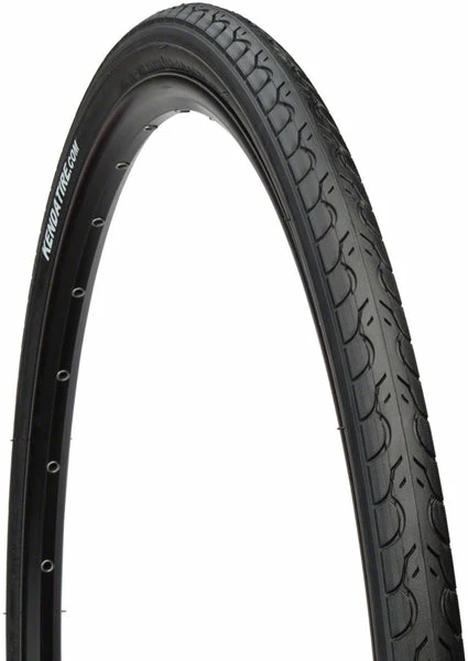 The Kenda Kwest Hybrid Tire is a road tire designed with a smooth rounded tread with large water dispersion grooves.