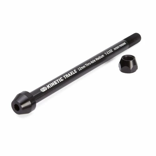 The Kinetic Traxle comes in 3 thread pitches, T-2101 Coarse – M12 x 1.75mm, T-2102 Medium – M12 x 1.5 and T-2100 Fine – M12 x 1.00mm (Fine XL has the same thread pitch and is a longer version of the fine traxle), to fit most bike brands. Unlike stock thru-axles, the Kinetic Traxle has tapered heads that stand out just far enough from the bike frame to fit into the cone cups on a trainer.