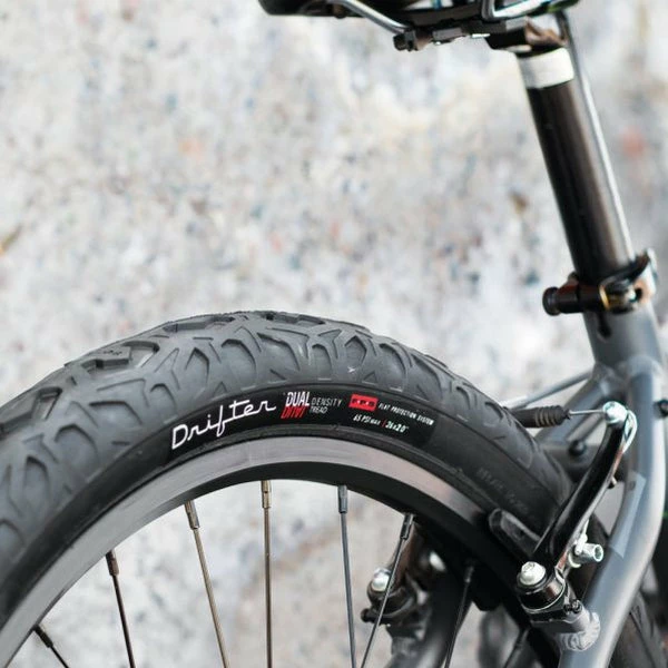 Designed with added Flat Protection and a smart inverted tread pattern the Serfas® Drifter provides high performance handling and speed on road while boasting impressive versatility and grip off road on dirt and gravel.