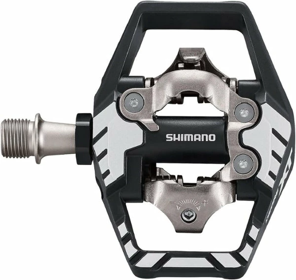 The Shimano M8120 XT pedals feature a stiff and lightweight design that rotates around a strong, durable chromoly spindle. Wider contact points and a lower platform height offer efficent power transfer and the strategic pedal body design enhances mudshedding.