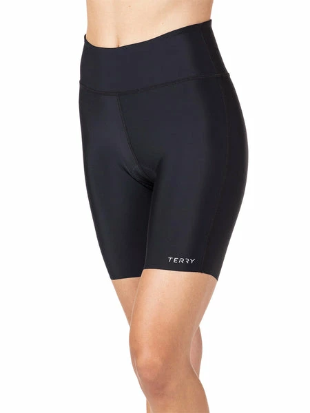 After many customer requests, Terry is pleased to introduce the Chill Tri Short. It’s a modified version of their celebrated, leg band-free Chill Short but in a 6 inch length, with a dedicated Tri chamois. Not only is this pad minimalist in nature (so you can wear it off bike), it has our signature soft wing construction and dual densities of foam so it provides a decent level of comfort for training without the bulk of a bigger chamois. This short is great for indoor use, too. High rise and high compression fit give it a performance edge that’s worthy of serious athletes.